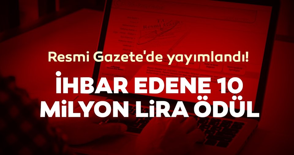 RESMİ GAZETE’DE YAYIMLANDI! İHBAR EDENE 10 MİLYON LİRA ÖDÜL