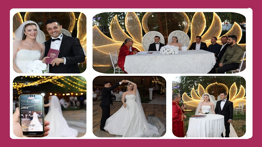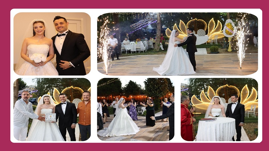 4 nikah şahidinin huzurunda “bir ömür boyu evet” diyen Tuğba ve Samet çifti, alkışlar eşliğinde hayatlarını birleştirirken, salonda duygusal ve neşeli anlar bir arada yaşandı.
