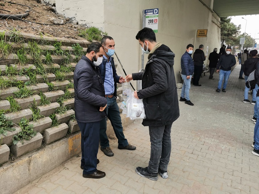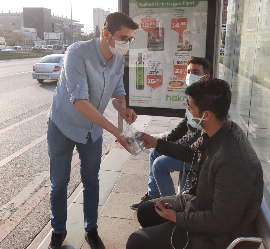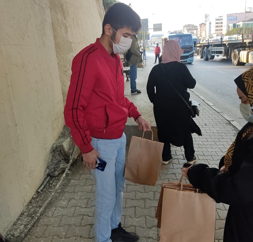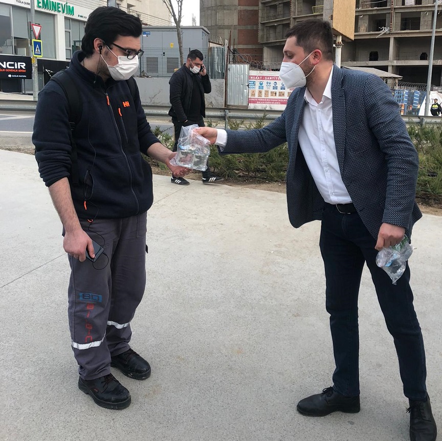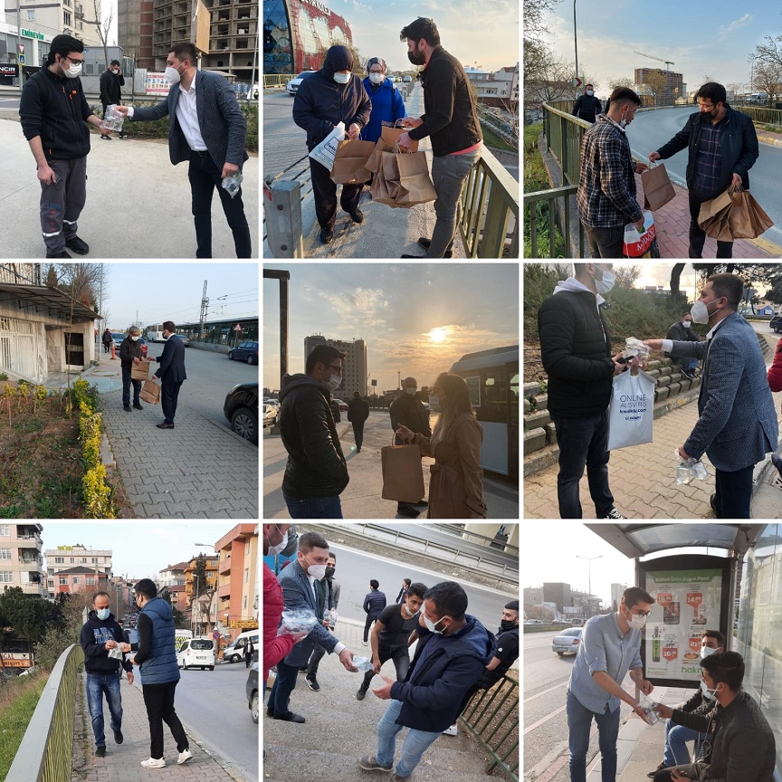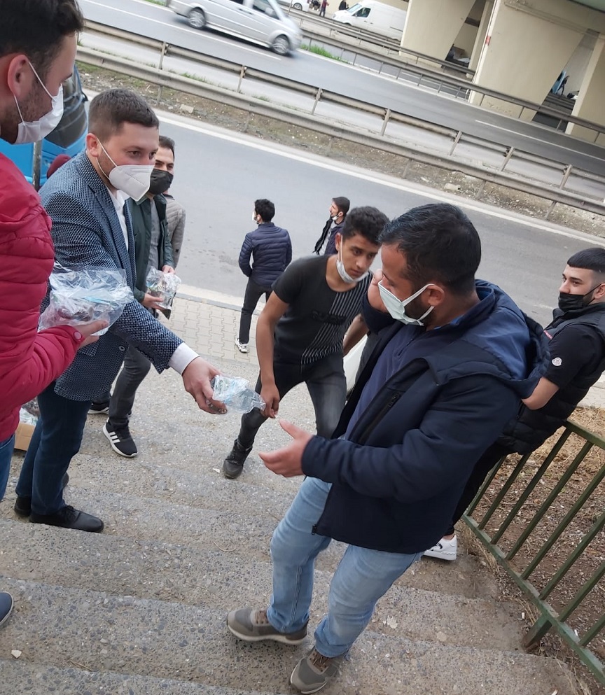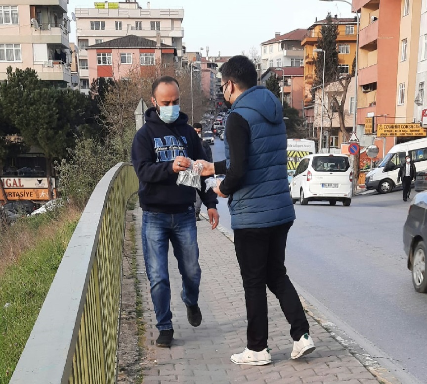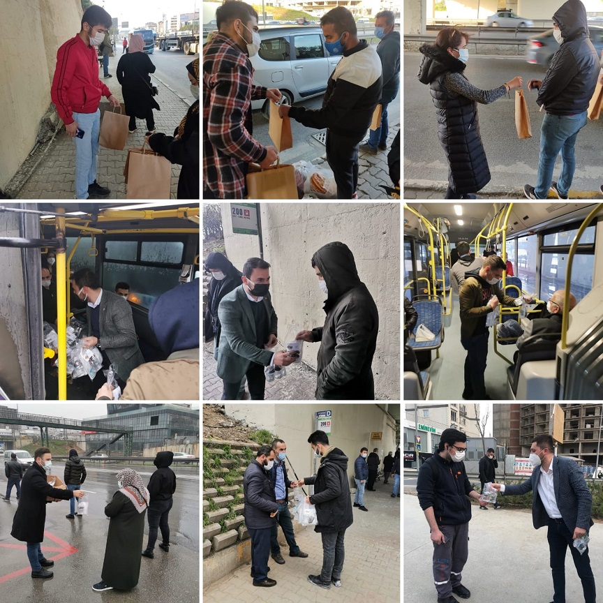 AK Parti Tuzla İlçe Başkanlığı, Tuzla Gençlik Kollarıyla, İl Gençlik Kolların Projesi Olan “İFTARA 5 KALA” Sloganı İle Yapılan Çalışmalarla E-5 ve Kavşaklardaki Trafik Işıklarında Seyir Halinde Araçlarında İftara Yetişmeye Çalışan Vatandaşlara İftarlık Olarak Su ve Hurma Yanında Maske ve Dezanfektan Oluşan İkram Poşetleri Dağıtıyor.
