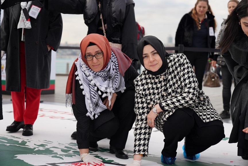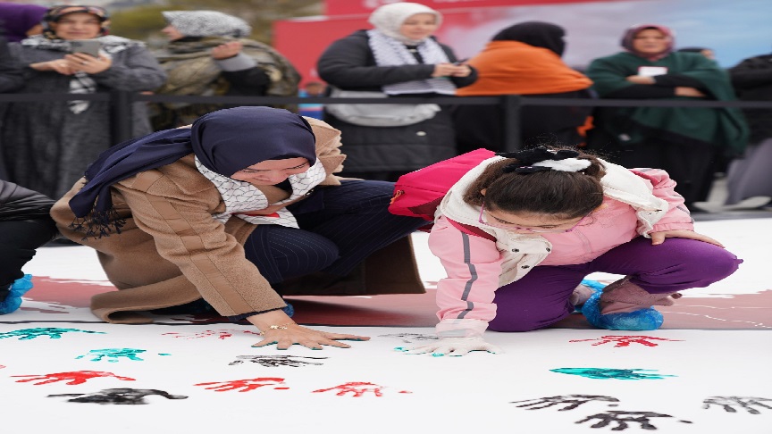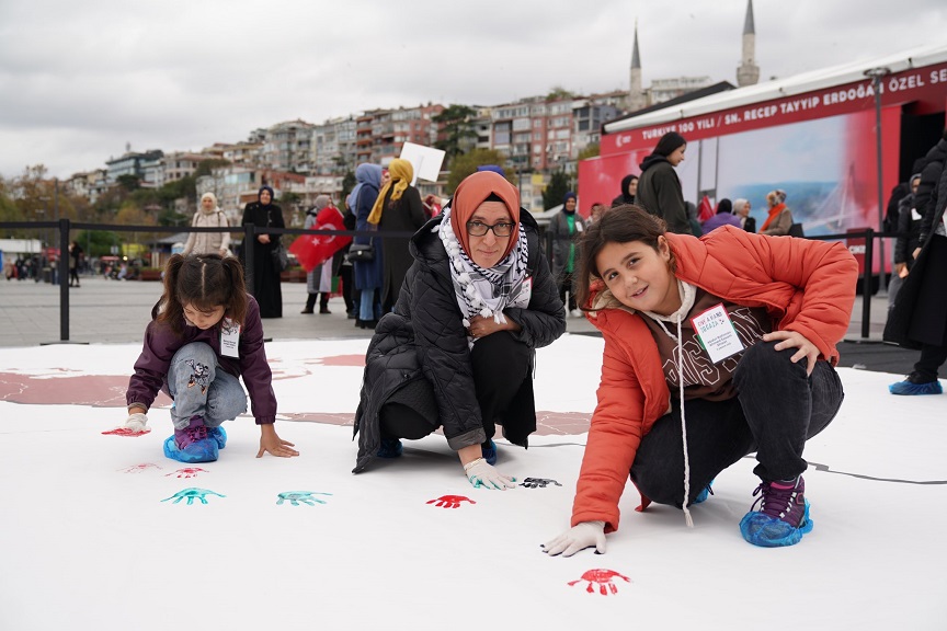 Açıklama Öncesinde Çok Sayıda Çocuk ve Kadın, Zemin Üzerine Hazırlanan Filistin Haritasına Ülkenin Renkleriyle Boyadıkları Elleriyle İz Bıraktı.