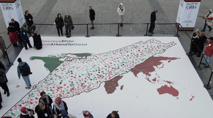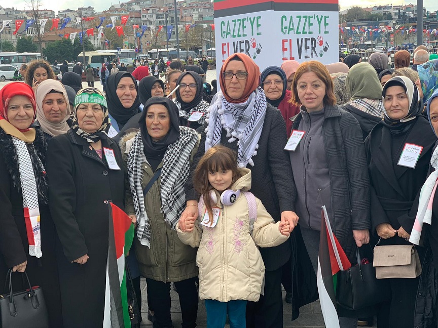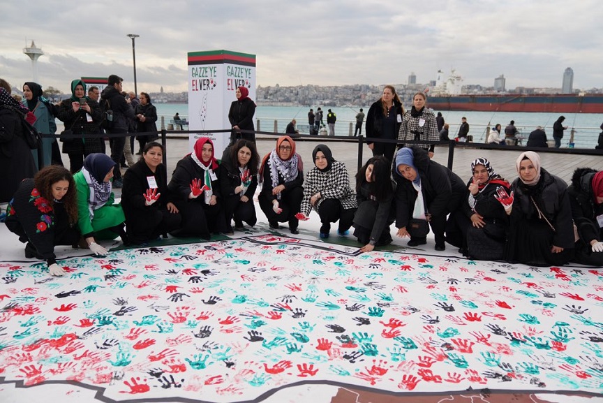 “Biz İse Onların Umutlarına, Yarınlarına, Gazze’nin Çocuklarına El Vermek İçin Buradayız. Gazze’nin Çocuklarını, Daima Hatırlamak İçin Buradayız. Bombaların Gölgesinde Aç ve Susuz Hayat Mücadelesi Veren, Yaşamasına Hak Tanınmayan Gazzeli Çocuklar İçin “Artık Yeter” Diyoruz. İnsanlık Vicdanı ve Yüce Yaratıcı Bu Katliamı Yapanları Asla Bağışlamayacak. Onlar Ne Yaptıklarını Çok İyi Biliyorlar. Fakat Şunu Göremiyorlar, Bir Avuç Filistinliden Kurtulmaya Çalışırken Tüm Vicdan Sahibi Dünya Halklarını Birer Filistinli Yaptılar.”