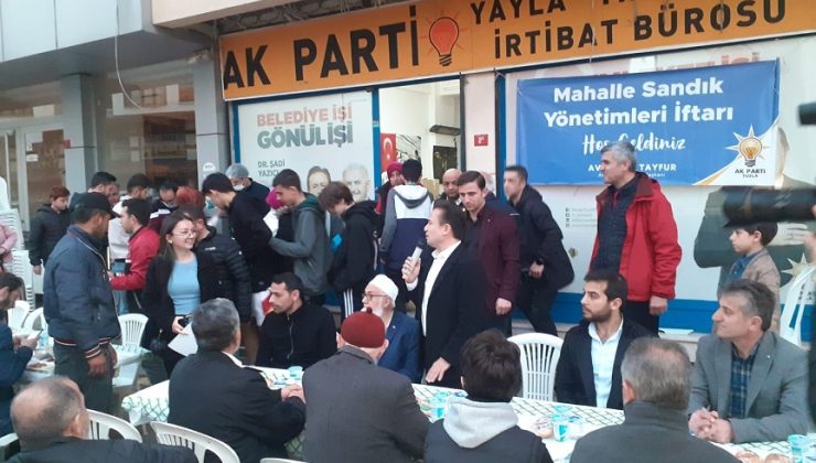 Tüm Mahallede Mahalle Başkanların Ev Sahipliğinde Gerçekleşen Sandık Yönetimleri İftarı Mahalle Teşkilat Binalarında Düzenlendi. İl Sorumlusu Barış Özerol, İlçe Başkanı Av.Talha Tayfur, Belediye Başkanı Dr.Şadi Yazıcı, Meclis Üyeleri, İlçe Yöneticileri, Kadın ve Gençlik Kolları Yönetimleri, Mahalle Başkanları ve Mahalle Yönetimleri Tam Kadro Katıldı. Başkanların Her Biri Farklı Mahallede Meclis Üyeleri, Mahalle Teşkilatları ve Sandık Yönetimleriyle Birlikte İftar Açtı.