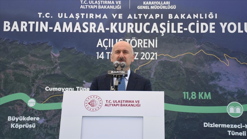 Ulaştırma ve Altyapı Bakanı Adil Karaismailoğlu, “Bartın-Amasra-Kurucaşile-Cide Yolu Projemizin Sadece Açılışını Gerçekleştirdiğimiz Çakraz-Karaman Köyü Kesiminin Bedeli 1 Milyar 455 Milyon Liradır.” Dedi.