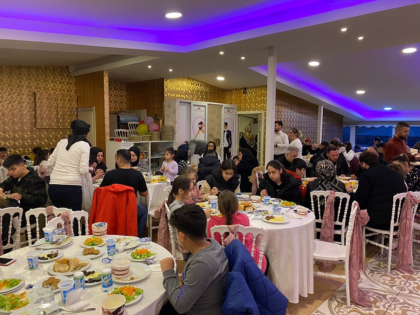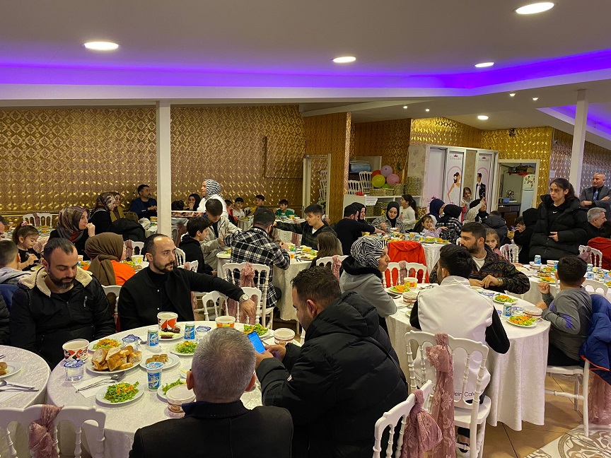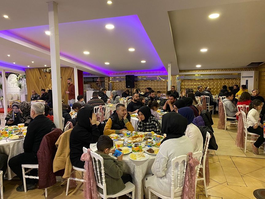 Sultan Sarayı Düğün Salonların Sahibi İş Adamı Bayhan Toruk Çok Sayıda Depremzede Ailelerin de Katıldığı Bir İftar Yemeği Düzenledi. Kuran-ı Kerim Tilavetiyle Başlayan İftar Programında Dualar Edildi ve Sahneye Çıkan Çocukların Okuduğu Duaların Ardından Ezanın Okunmasıyla Oruçlar Açıldı.