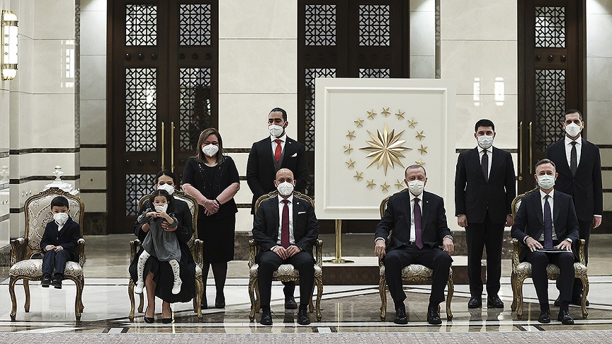Calderon’un Eşi ve Çocukları İle Bazı Büyükelçilik Mensuplarını Cumhurbaşkanı Erdoğan’a Takdiminin Ardından Hatıra Fotoğrafı Çektirildi.