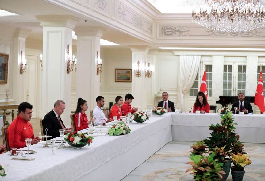 Çankaya Köşkü’nde, Gençlik ve Spor Bakanı Mehmet Muharrem Kasapoğlu’nun da Hazır Bulunduğu Yemeğe Boks, Eskrim, Jimnastik, Güreş, Halter ve Tekvando Branşlarında Madalya Kazanan Şu Sporcular Katıldı;