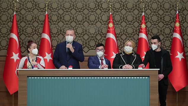 Cumhurbaşkanı Erdoğan, “Dünyanın En Gelişmiş Ülkelerinde Şu Anda Aşı Sıkıntısı Var. Biz İse Süratle Aşılarımızı Aldırmaya Başladık. En Müreffeh Ülkelerde Yürek Burkan Sahnelerin Görüldüğü Bir Süreci En Az Sıkıntıyla Geride Bırakmayı Başardık.” Dedi.