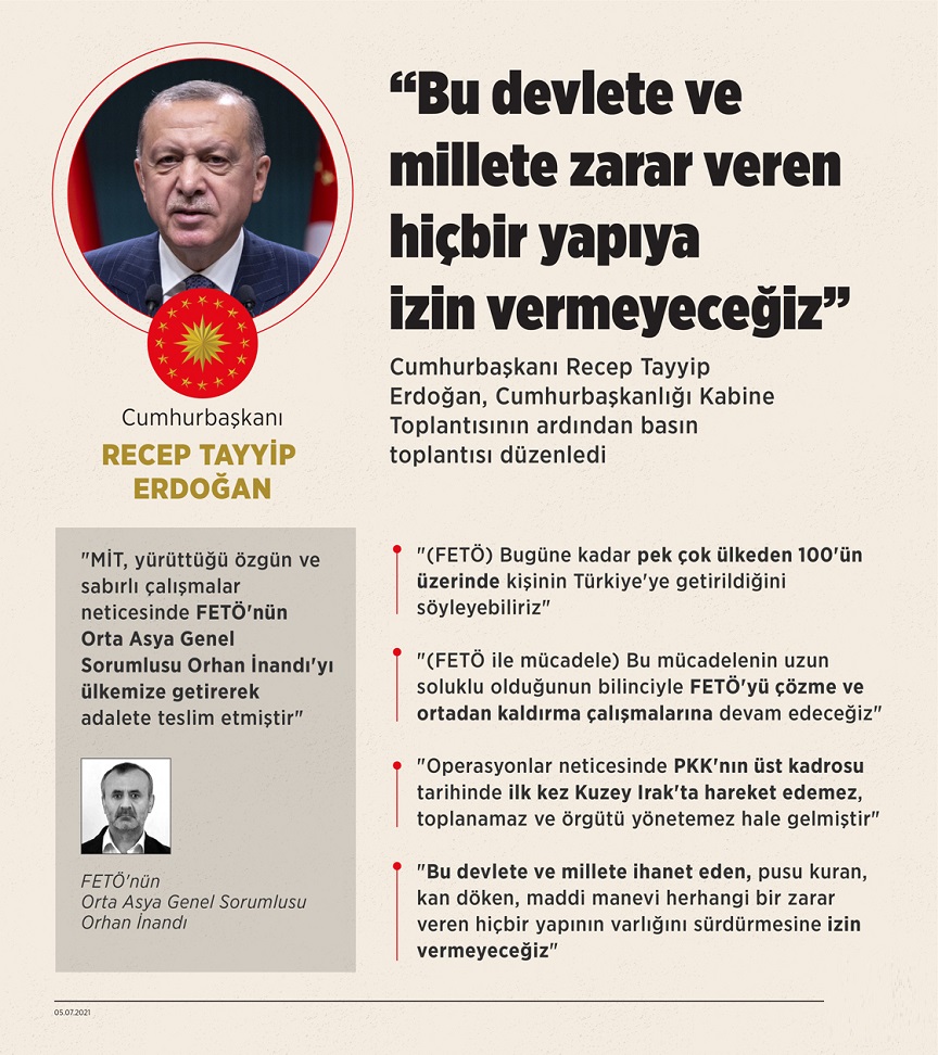 Son Dönemde Üst Üste Yakalanan İsimler, FETÖ’ye Dünyada Hiçbir Yerin Kendisi İçin Güvenli Olmadığı Gerçeğini Bir Kez Daha Göstermiştir. Örgüt, Mensupları Arasındaki Panik Havasını Yatıştırmak İçin Yurt Dışındaki Destek Arayışlarını ve Ülkemiz Aleyhtarı Kampanyaları Artırmıştır. Diğer Tüm Terör Örgütleri Gibi FETÖ İle Mücadelemiz de Kesintisiz Sürecektir. Bu Devlete ve Bu Millete İhanet Eden, Pusu Kuran, Kan Döken, Maddi Manevi Herhangi Bir Zarar Veren Hiçbir Yapının Varlığını Sürdürmesine İzin Vermeyeceğiz.”