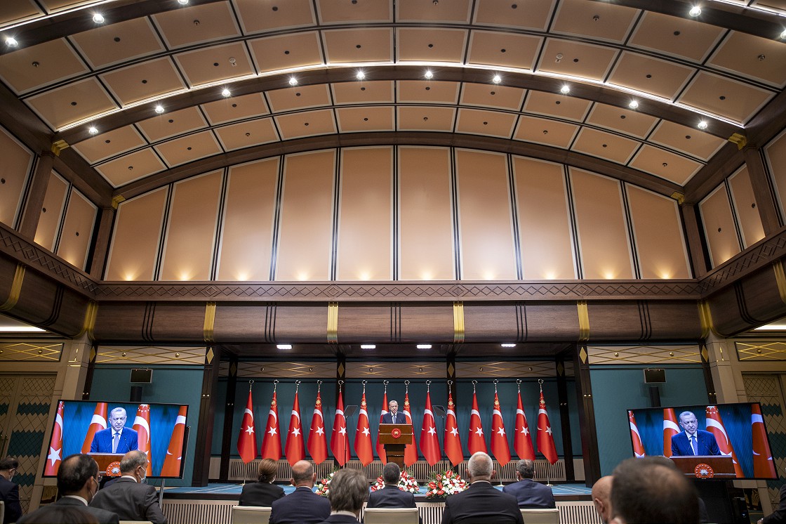 Cumhurbaşkanlığı Külliyesi’ndeki Kabine Toplantısı’nın Ardından Millete Seslenen Cumhurbaşkanı Recep Tayyip Erdoğan, Toplantıda, Küresel Bir Sağlık Krizine Dönüşen Yeni Tip Koronavirüs (Covid-19) Salgını Başta Olmak Üzere Gündemlerindeki Dış Politika, Güvenlik ve Diğer Başlıklara İlişkin Değerlendirmeler Yaptıklarını Söyledi.