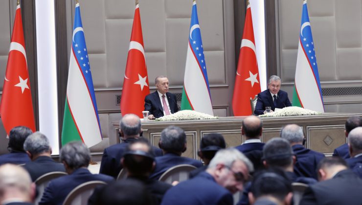 Özbekistan Cumhurbaşkanı Şevket Mirziyoyev İle İmzaladıkları Ortak Bildirinin Gelecek Dönemde Bir Yol Haritası Teşkil Edeceğinin Altını Çizen Erdoğan, “Bugün Ayrıca Türk Devletleri Teşkilatımız Başta Olmak Üzere, Uluslararası Platformlarda Dayanışmamızı, Bölgesel Meselelerde Yakın Temasımızı Sürdürmemiz Noktasında İrademizi Teyit Ettik. Bizim Ortak Yanlarımız Çok, Özellikle Beslendiğimiz Kaynaklar Aynı” Diye Konuştu.