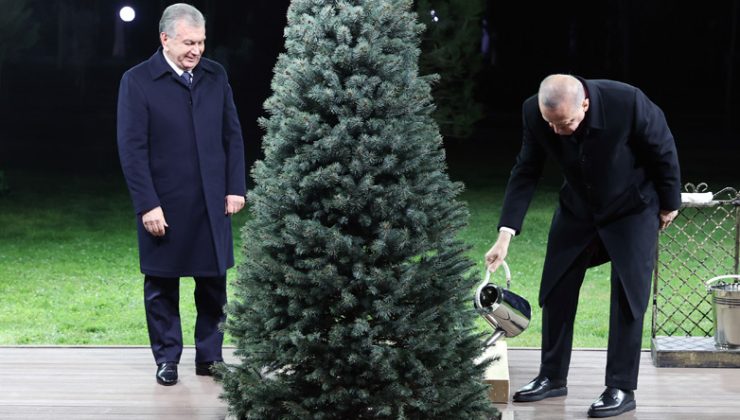 CUMHURBAŞKANI ERDOĞAN VE ÖZBEKİSTAN CUMHURBAŞKANI MİRZİYOYEV DOSTLUK AĞACI DİKTİ