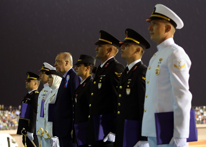 Erdoğan, Mezun Subay ve Astsubayların Gurur Gününde Onlarla Birlikte Olmaktan Memnuniyet Duyduğunu Belirtti. Ülkenin Ve Milletin İstiklali ve İstikbali İçin Görev Yaparken Hayatlarını Kaybeden Asker, Polis, Jandarma ve Sahil Güvenlik Teşkilatının Tüm Mensuplarına Allah’tan Rahmet Niyaz Eden Erdoğan, Aynı İdeal Uğruna Yaralanan Kahraman Gazilere Ülke ve Millet Adına Şükranlarını Sundu, Sağlıklı, Hayırlı Ömürler Diledi. Bir Tarafta Evlatlarının Mezuniyet Törenine Katılan Aileler, Diğer Tarafta Şehit Aileleri, Gaziler ve Gazilerin Aileleriyle Ülkenin İstikbali ve İstiklalini Konuştuklarını İfade Eden Erdoğan, Ülkenin Dört Bir Köşesinden, Hemen Her İlinden Evlatların Jandarma ve Sahil Güvenlik Akademisini Bitirmenin Heyecanını Yaşadığını Aktardı.