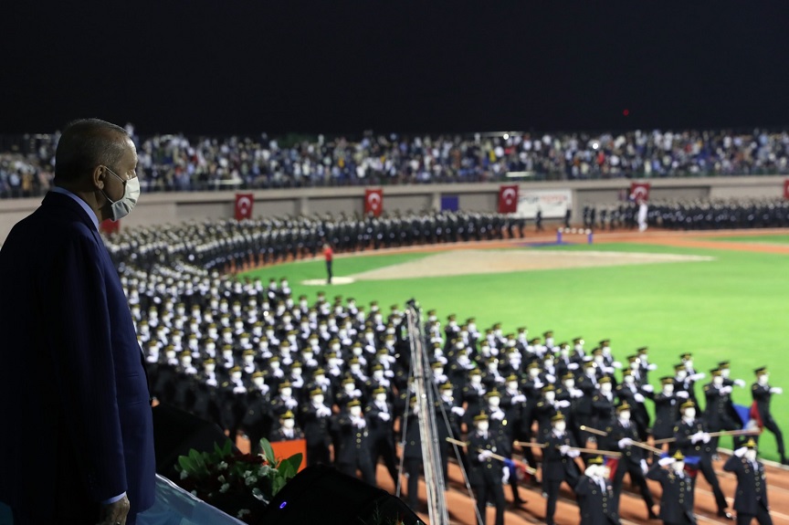 Yahya Kemal’e Ait “Şu Kopan Fırtına Türk Ordusudur Ya Rabbi. Senin Uğrunda Ölen Ordu Budur Ya Rabbi. Galip Et Çünkü Bu Son Ordusudur İslam’ın.” Dizelerini Okuyan Erdoğan, “Sizlerden Tek Millet, Tek Bayrak, Tek Vatan, Tek Devlet Diye İfade Ettiğimiz Rabiamıza Sahip Çıkmanızı İstiyorum. Bu Toprakları Bize Emanet Eden Türk Kahramanlar Gibi Gerektiğinde Canınız Pahasına Ezanımıza, Bayrağımıza, Vatanımıza ve Bağımsızlığımıza Sahip Çıkacağınıza Yürekten İnanıyorum. Rabbim Sizleri Her Türlü Kazadan, Beladan, Saldırıdan, Görünür ve Görünmez Musibetten Muhafaza Buyursun. Akademinin Tüm Hocalarını, Komutanlarını Mezunlarımızın Kıymetli Velilerini Gönülden Tebrik Ediyorum.” Diye Konuştu.