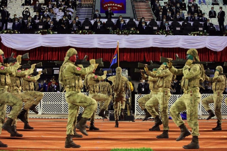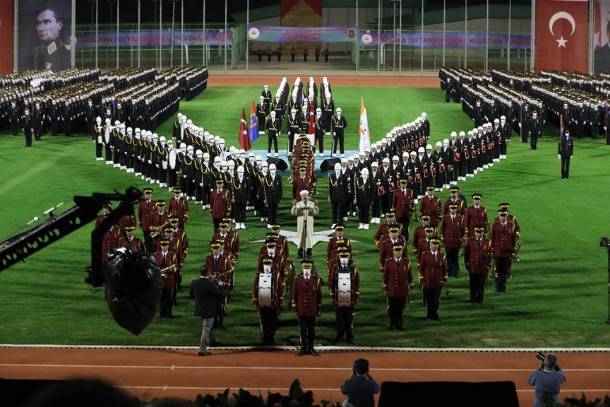 Ardından Jandarma ve Sahil Güvenlik Akademisi Bayrak Devir Teslim Töreni Gerçekleştirildi. Cumhurbaşkanı Erdoğan’ın Konuşmasının Ardından Jandarma Merasim Bölük Komutanlığınca Tüfekli Hareketler Gösterisi Sunuldu.