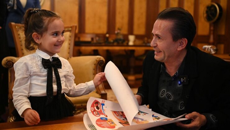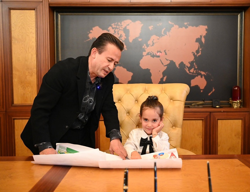 Dr. Şadi Yazıcı’nın Makamına Hazırladığı Projeleri İle Giren 4 Yaşındaki Ayşe Eda Ödev, Büyüdüğünde Belediye Başkanı Olmak İstediğini Söyledi. Başkan Yazıcı İle Projeler Üzerinde Hasbihal Eden Ödev, Çikolata Şelalesi, Çocuk Hastanesi Gibi Fikirlerini Sundu. Sunumdan Sonra Yazıcı’nın Makamına Oturan Ödev, Hediyesini Burada Açtı. Aşçı Kıyafetleri Giyen Ve Büyüdüklerinde Aşçı Olmak İstediklerini Söyleyen Buse Sönmez (3) Ve İpek Azra Korkut (4) İse Başkan Yazıcı’ya Yaptıkları Pastayı İkram Etti. Eğlenceli Vakit Geçirdiklerini Söyleyen Çocuklar, Teşekkürlerini İletip Makamdan Ayrıldı.