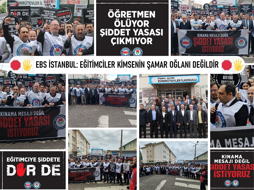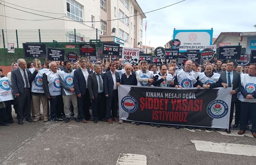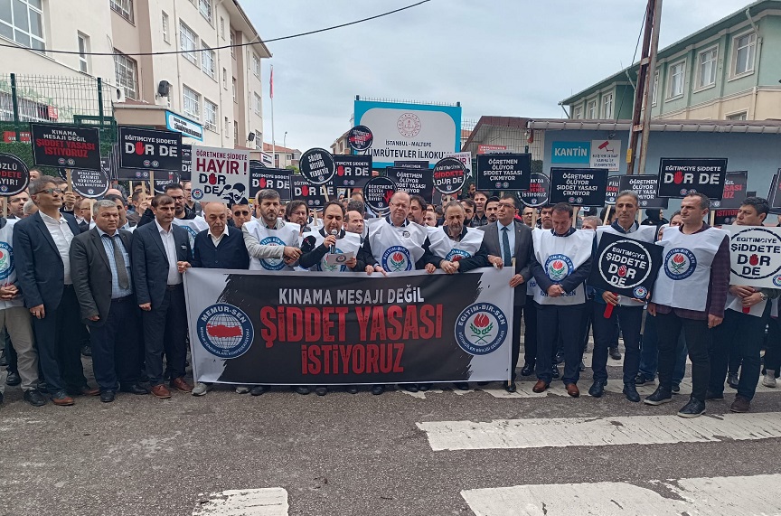 Geçtiğimiz hafta Maltepe’de bir ilkokulda düzenlenen geziye katılan öğrenci, velisini beklemeden eve gitmiş Okula gelen veli çocuğunu bulamayınca okul yöneticileriyle tartışmaya başlayarak okul müdürü ve yardımcısına saldırmıştı. Olayı protesto eden İstanbul Eğitim-Bir-Sen Şubeleri okul önünde basın açıklaması gerçekleştirerek eğitimciye şiddete tepki gösterdi.