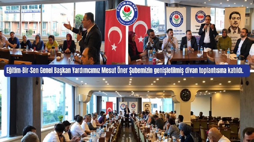 Eğitim-Bir-Sen İstanbul 4 Nolu Şube olarak genişletilmiş Şube divanımızı, teşkilatlanmadan sorumlu Genel Başkan Yardımcımız Mesut Öner, İstanbul 2 Nolu Şube Başkanı Mahmut Akay, Şube Başkanımız Bilal Duran, Şube Yönetimimiz, İlçe Başkanlarımız, İlçe Yönetim Kurullarımız, Kadın Komisyonumuz, Denetleme ve Disiplin Kurullarımız, Yönetici okulu komisyonumuzun katılımı ile gerçekleştirdik.