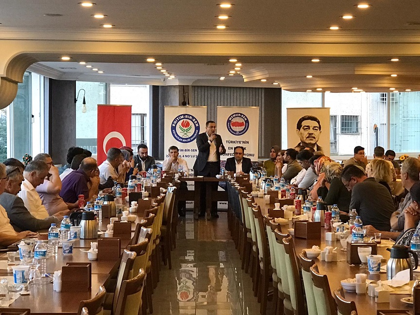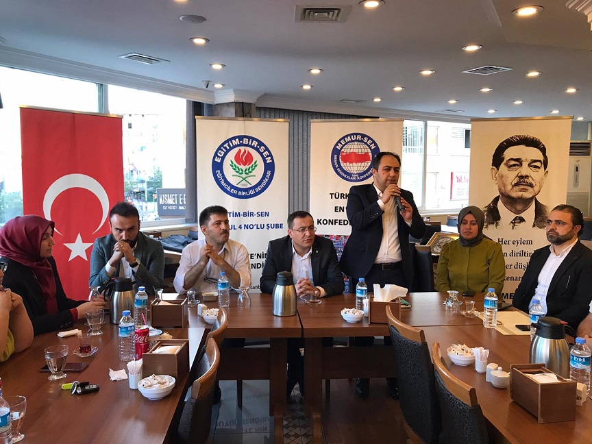 Eğitim ve eğitim çalışanlarının sorunlarının ve çözüm önerilerinin görüşüldüğü, 7. Dönem Toplu Sözleşme sürecinin sonuç ve ayrıntılarının değerlendirildiği, yeni eğitim-öğretim yılında yapılması tasarlanan çalışmalara ilişkin istişarelerin yapıldığı toplantıda konuşan Genel Başkan Yardımcımız Mesut Öner, “Bugüne kadar elde ettiğimiz kazanımların tümünde de bu gerçeklik üzerinden hareket ettik. Çalışma hayatına ilişkin birçok sorunun çözülmesinde, kazanım hanesine yazılmasında yerimiz, terimiz ve imzamız var” dedi.