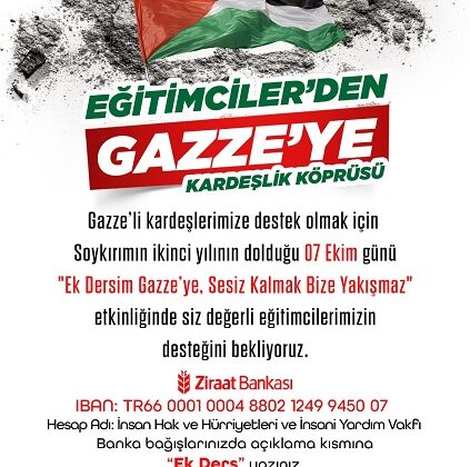 Bu nedenle bugün Gazze için attığımız adım bir yardım faaliyeti değil, kişiliğimizin, kimliğimizin gereğidir. Biliyoruz ki öğretmenlik sadece ders anlatmak değildir; öğretmenlik insanlık davasında önde durmaktır, iyiliğin öncüsü olmaktır. Biz bu bilinçle hareket ediyoruz. Bu kampanya bizim için bir başlangıç değil; süregelen dayanışmamızın yeni bir halkasıdır. Son iki yılda iftar programlarından yetim desteklerine, farklı yardım kuruluşlarıyla birlikte defalarca sahada bulunduk. Bugün de aynı kararlılıkla Gazze’nin yanında duruyor; imkânlarımızı büyüterek bu desteği sürdürüyoruz. Bu sorumlulukla Eğitim-Bir-Sen İstanbul 4 No’lu Şube olarak İHH iş birliğiyle “Eğitimden Gazze’ye Kardeşlik Köprüsü” kampanyasını başlatıyoruz. Bu kampanyada sembolik çağrımız şudur: Bir günlük ek ders ücretimizi Gazze’deki acil insani ihtiyaçlara bağışlıyoruz. Elbette imkânı olan her üyemiz, destek vermek istediği ölçüde katkısını artırabilir. Bu bir yardım çağrısından öte, insan onuruna sahip çıkma iradesidir.