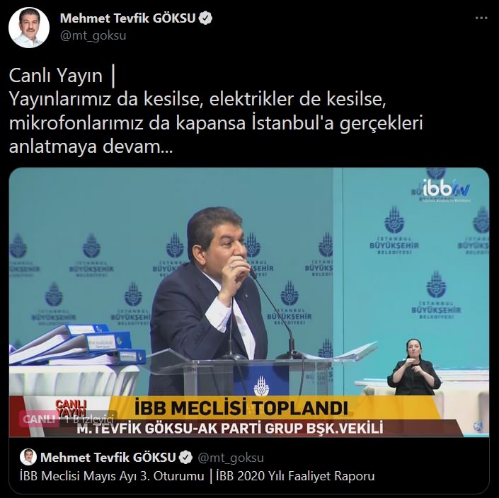 Kabaktepe Sosyal Medyadan Yaptığı Açıklamada “Grup Başkanvekilimiz Tevfik Göksu’nun Kürsüde 2 Kez Konuşması Kesildi. Yetmedi Elektrikleri de Kestiniz. Gerçeklere Neden Tahammül Edemiyorsunuz; Muhalefetinizin Söz Hakkını Neden Gasp Ediyorsunuz? İstanbul’u da İBB Meclisi’ni de Karanlığa Hapsetmenize FIRSAT VERMEYECEĞİZ!” Dedi.