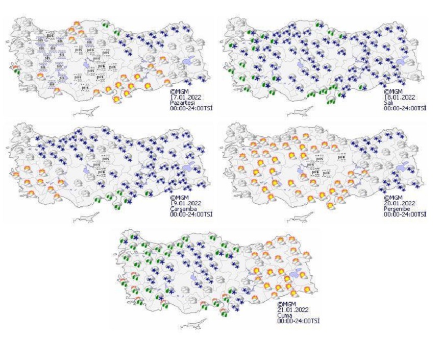Şen, “Önümüzdeki Hafta Sonu (22 Ocak) Orta Avrupa’dan Sarkacak Soğuk ve Yağışlı Bir Hava Kütlesi Türkiye de Kış Şartlarını Hissettirecek Gibi Görünüyor. 3-4 Gün Sürecek. Geçtiğimiz Sistemden Daha Kuvvetli. Şimdiden Söylüyorum 10 Günlük Tahmin Yapmak Risklidir. +/- 1 Gün Olabilir” Dedi.