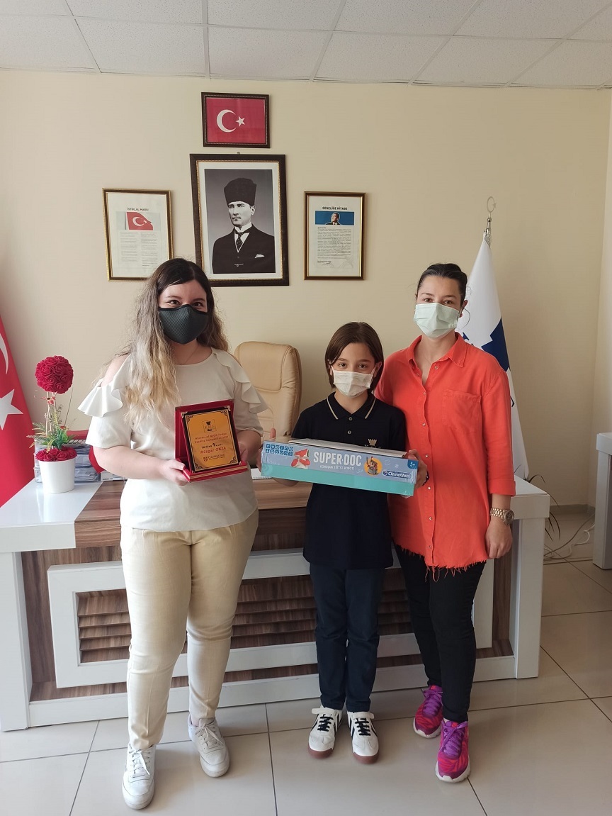 Myon Turkey Reading Competition 2021 (Türkiye İngilizce Kitap Okuma Yarışmasında) Tüm Özel Okullar Arasında Dereceye Giren Kale Okulları İzmit Kampüsü Öğrencileri Nehir Ergün’ün ve Rüzgar Okta’nın Hediyelerini Vererek Tebriklerini İletti.