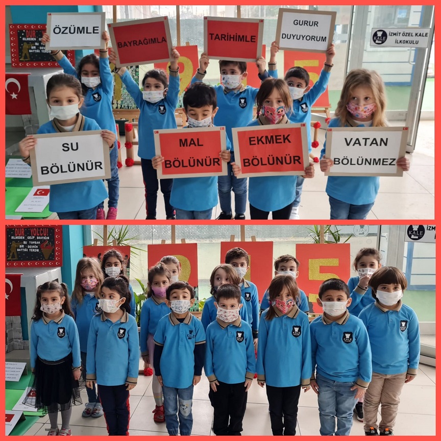 Türk Tarihinin Dönüm Noktalarından Olan ve Bağımsızlık Savaşının Temellerinin Atıldığı Çanakkale Zaferi’nin 106. Yıl Dönümü, İzmit Özel Kale Anaokulunda Bir Dizi Etkinlikle Anıldı. Minicik ve Bir O Kadar Cesur Yüreklerine Vatan ve Bayrak Sevgisini Nakşetmek ve Çanakkale Ruhunun 106 Yıldır Dimdik Ayakta Olduğunu Görmek Büyük Bir Gurur Tablosuydu.