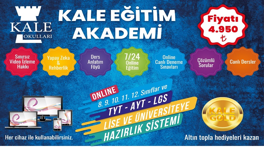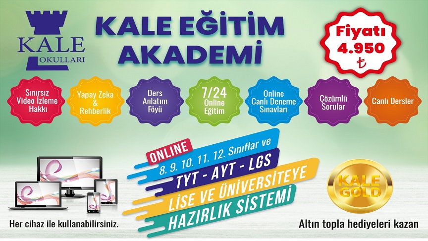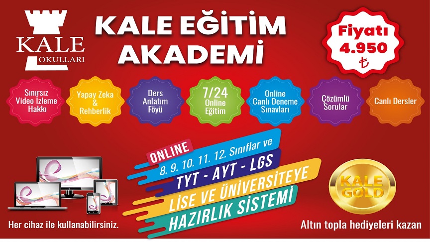 Kale Okulları Bugüne Kadar Görülmemiş Bir Eğitim Desteğine Daha İmza Attı. Pandemi Döneminde Online Eğitimde Yaşanan Aksaklıkları ve Bu Eğitimlere Bazı Öğrencilerin Sağlıklı Şekilde Ulaşamaması Üzerine Kale Okulları, Gruba Bağlı İlkokul, Ortaokul, Anadolu Lisesi ve Meslek Liselerinde Okuyan Tüm Öğrencilerine 12 Aylık Online Eğitim Programı Hediye Edecek.