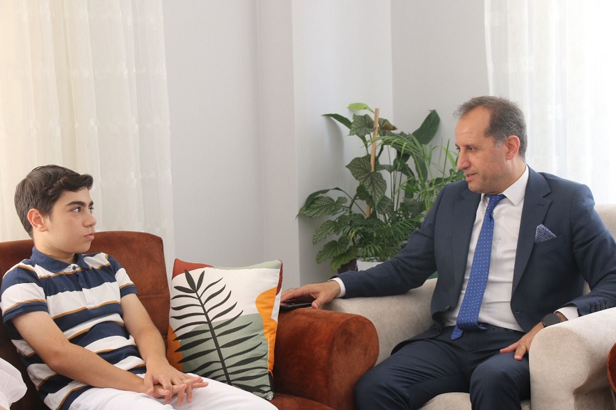 Tuzla İlçe Millî Eğitim Müdürü Sayın Metin ÇANGIR, süregelen rahatsızlığı nedeniyle evde eğitim hizmeti alan Abdullah Tayyip Olçok İmam Hatip Ortaokulu 8. sınıf öğrencisi Bulut Kaygalak’ı evinde ziyaret ederek karnesini takdim etti.