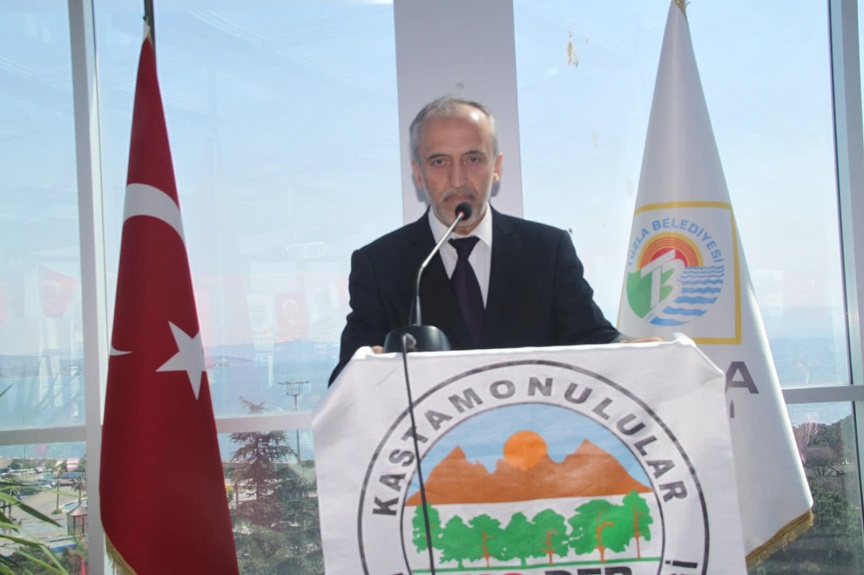 Değerli Hemşerilerim, Kastamonu Nerededir? Sinop’un Doğusunda, Bartının Batısında, Çankırının Güneyinde Yer Alan Bir Şehir. Kastamonuyu Haritada Göstermek Bu Kadar Kolay Ama Asıl Soru Kastamonu Deyince Akla Ne Gelir? Şeyh Şaban-I Veli Hazretleri Gelir İstiklâl Yolu’nda Donarak Şehit Olan Şerife Bacı Gelir, Halime Çavuş Gelir. İstiklâl Marşımızın Mehmet Akif Ersoy Tarafından İlk Defa Okunduğu Nasrullah Camii Gelir. Kastamonu Denince Akla Toprağımızın Bereketine Bereket Katan Evliyalar Gelir. Cenneti Andıran Koylar, Ormanlar, Kanyonlar Gelir Ilgazların Temiz Suyuyla Yetişen Tarım Ürünleri Gelir Kastamonu Denince Akla Mustafa Kemal Atatürk Gelir. Gözüm Sakarya’da Dumlupınar’da; Kulağım İnebolu’da Sözü Gelir. Değerli Hemşerilerim, İçinde Yaşadığımız İstanbul’un Nezih İlçesi Tuzlamızda Kastamonulular Olarak Yoğun Bir Nüfusa Sahibiz. Burada Önemli Olan Şudur: “Herkesin Fikirlerini Bir Araya Getiremezsiniz Ama Herkesi Bir Amaç Uğrunda Bir Araya Getirebilirsiniz”. Kasder Tuzla Şubesi Olarak Temel Amacımız Tuzla’da Kastamonulular Arasındaki Birliği ve Dayanışmayı Sağlamak, Güzel Kastamonu’muzu Tanıtmak, Eğitim, Spor, Kültür ve Sanat Aktivitelerine Kadar Pek Çok Alanda Kastamonu’ya ve Kastamonululara Hizmet Etmektir. Bu Amaç Doğrultusunda Kastamonumuz İçin Birlik ve Beraberlik İçinde Olacağımız Temennesi İle Hepinizi Bir Kez Daha Saygıyla Selamlıyorum İfadelerini Kullandı.