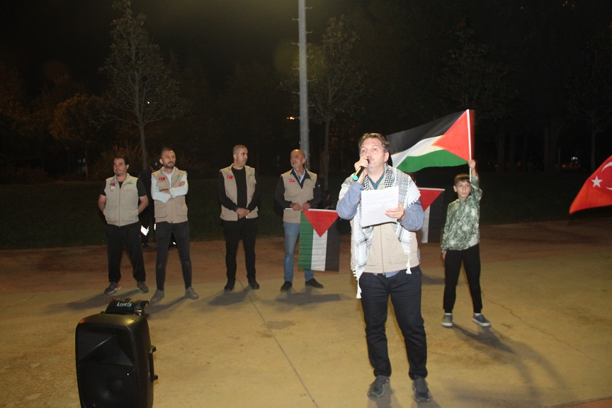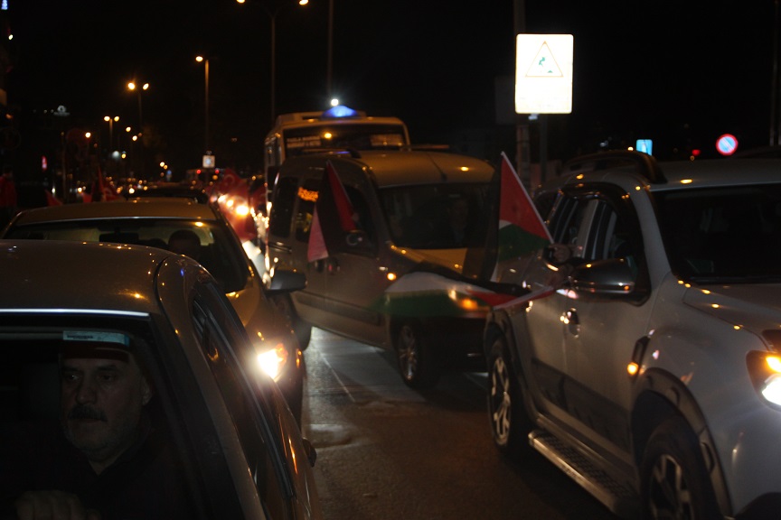 Bugün burada ve İstanbul’un tüm ilçelerinde yaptığımız araç konvoylarıyla Filistin dostlarıyla birlikte İsrail’in hukuksuz uygulamalarına ve saldırılarına karşı çıkıyoruz. Filistin sevdalıları olarak bu davayı savunmaya devam edeceğiz. Türkiye’yi, uluslararası mekanizmaları, liderleri ve vicdan sahibi herkesi acil olarak harekete geçmeye ve İsrail’in attığı bu hukuksuz adımları, işgali ve saldırıları bir an önce durdurmaya çağırıyoruz.