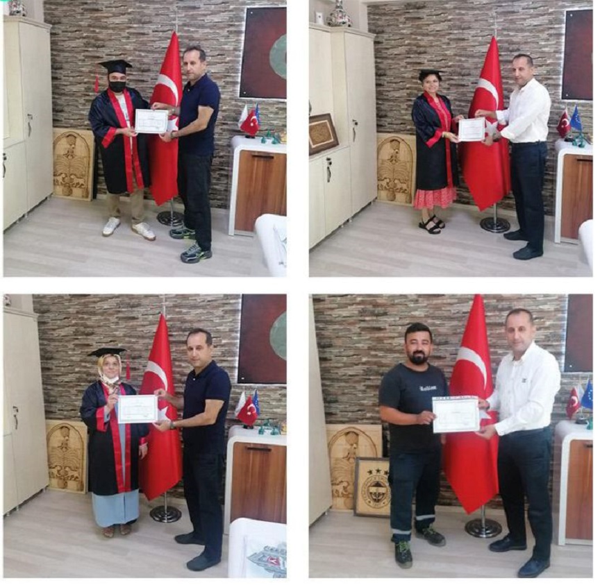 Halk Eğitimi Merkezi Müdürü Metin Çangır Yaptığı Açıklamada 2021/1. Dönem Sınavları Sonucunda 1453 Vatandaşımız Mezuniyet Sevinci Yaşamıştır. Bugün Diplomasını Teslim Ettiğimiz Gülsen Sarıyıldız Hanımda Çocukları İle Mezuniyet Diplomasını Almaya Gelmesi Hem Çocukları İçin Hem de Bizler İçin Gurur Kaynağı Olmuştur. Eğitimi Yarım Kalmış Her Vatandaşımıza Ulaşmak İstiyoruz. 2021/2. Dönem Kayıtlarının 28 Ocak’a Kadar Devam Ettiğini Sözlerine Ekledi.