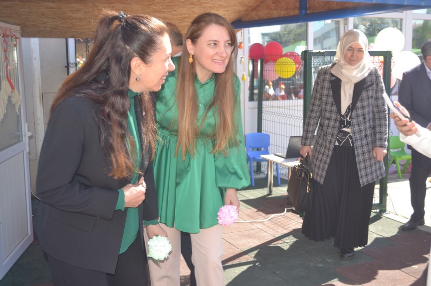 Okul Müdiresi Gülnur ÇAT ‘’Biz bugün burada başta Kıymetli Burcu ÖZSOY hocamız olmak üzere kıymetli protokol ve sevgili öğrencilerimizle hayata geçirdiğimiz yeni eğitim alanları ve projelerin açılışının heyecanını yaşıyoruz. Anasınıfı, ortaokul ve lise düzeylerinde eğitim öğretim yapılmakta olan okulumuzda tüm öğrencilerimize hitap eden eğitim alanlarını dizayn etmiş olmanın sevincini paylaşıyoruz. Malumunuz olduğu üzere İslam Bilim Tarihçisi Prof. Dr. Fuat Sezgin hocamız 27 farklı lisan biliyor ve nihayetinde tarihimize bir müze kazandıran araştırmalarını bu donanımla yaptı. Bu husus Türkçe, Arapça ve İngilizce dil becerileri kazandırmaya çalışan okulumuz için bir ilham kaynağı olmuştur. Merhum Fuat SEZGİN hocamızdan aldığımız ilham ile dizayn ettiğimiz Prof. Dr. Fuat SEZGİN Yabancı Diller Sokağı ve Prof. Dr. Fuat SEZGİN Lisan Kahvesi ile maksadımız öğrencilerimizin yabancı dil öğreniminde Merhum Fuat SEZGİN gibi bir rol modelden feyz almalarını sağlamaktır. Sokağımızın oluşturduğu yabancı dil farkındalığı sokağımızın sonundaki Lisan Kahvesi’nde yapılan kek, çay ve sıcak çikolata gibi ikramlar ile oluşturulan iklimde, güvenli bir sosyal alanda, nezih bir mekânda konuşma pratiğine dönüşüyor. Bu projemizin Fuat SEZGİN Hocamızın doğumunun yüzüncü yılına denk gelmesi bizim için ayrıca hem onur hem de vefa vesilesidir. Anasınıfı öğrencilerimiz için oluşturduğumuz Oyun Evi askıya çıkarılan Türkiye Yüzyılı Maarif Modelinde de öngörüldüğü üzere anasınıfı öğrencilerimizin sınıf dışına çıkarak bahçe alanında sosyal ve kinestetik öğrenme becerilerinin gelişmesine imkan tanımaktadır. Aynı şekilde mescidimizin teşrifatını yaptık. Şükür ki İmam Hatip okullu kız öğrencilerimizi Din-i Mübin İslam’ın miracı olan namazı huşu içerisinde eda edecekleri bir mekâna kavuşturduk. Keza güvenli okul yaklaşımı ile ele aldığımız bir husus olarak gönüllü velilerimizin destekleri neticesinde okul bahçemizin Turnike Sistemi hayata geçirdiğimiz bir diğer projemizdir. Biz bütün bu çalışmaları yarını inşa eden nesilleri yetiştirme bilinci ile yapmaktayız. Gayemiz hayırlı işlere vesile olarak Rabb’in rızasını kazanmak; güvenli bir ortamda, sosyal ve yabancı dil becerileri gelişmiş, milli ve manevi değerler ile mücehhez nesiller yetiştirmektir.’’ dedi.