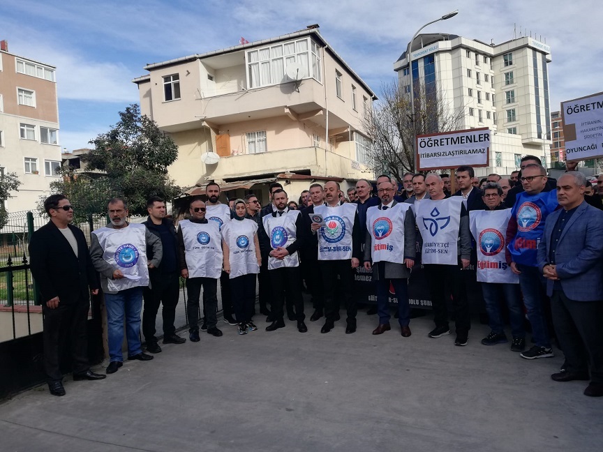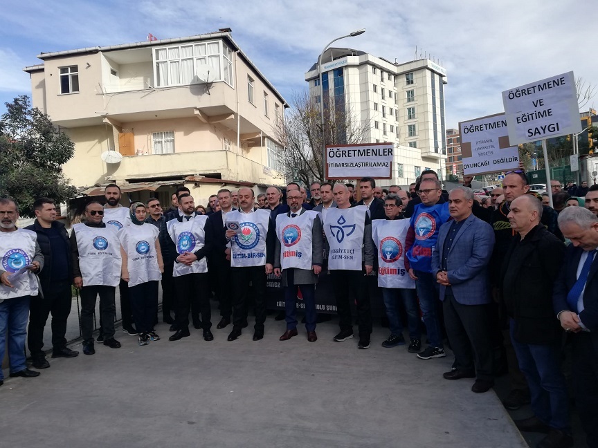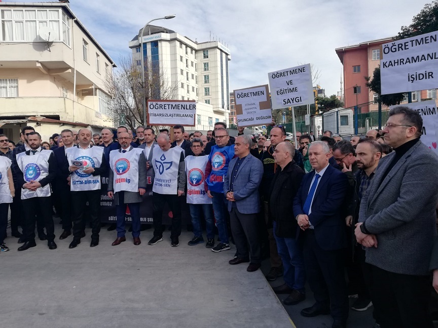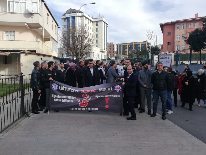 Bugün Burada, Eğitim-Bir-Sen İstanbul 4 Nolu Şube Olarak; Ders Saatinde Okul Güvenliğini Tehdit, Görevi Başındaki Devlet Memurunun Dokunulmazlığını İhlal Eden, Okul Koridorunda Görevi Başındaki Personele Saldırarak Eğitim Öğretimi Engelleyen Sorumsuz Bir Velinin, Televizyon Kanallarını da Yanıltarak Sistematik Hale Getirdiği Şiddeti Kınamak İçin Toplanmış Bulunuyoruz.