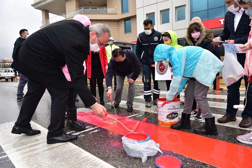 TUZLA’DA YAYA GEÇİTLERİ KIRMIZIYA BOYANDI