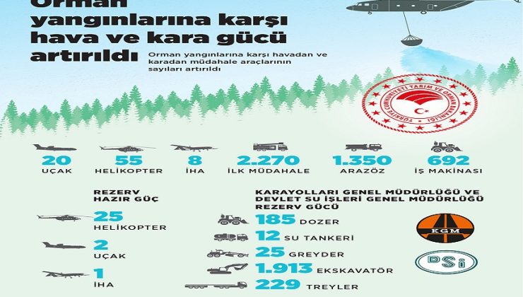 “Yeşil Vatanımız Olarak Tanımladığımız Ormanlarımızı Her Yıl Yangınlara Karşı Korumak İçin Önemli Adımlar Atıyoruz. Bu Yıl Orman Yangınlarıyla Mücadele Özellikle Teknoloji Yoğunluklu Bir Strateji Çerçevesinde Gerçekleştirilecektir. Yangınlara Karşı Hava ve Kara Gücümüzü Daha da Güçlendiriyoruz. 39 Olan Helikopter Sayımızı 55’e, Uçak Sayımızı 3’ten 20’ye, İHA Sayımızı 4’ten 8’e Yükselttik. Rezerv Güç Olarak 25 Helikopter, 2 Uçak ve 1 İHA Hazırda Beklemektedir. Yani Hava Gücü Olarak Hazırlıklarımız Bu Manada Tamdır. Yangınların Söndürülmesinde En Önemli Güç Olan Karadan Müdahale Ekiplerini de Önemli Ölçüde Artırdık. Orman Teşkilatı Başta Olmak Üzere, Jandarma, Sivil Toplum Kuruluşları ve Gönüllü Vatandaşlarımıza Yangınlara Karşı Eğitim Verdik, Vermeye Devam Ediyoruz. Bu Eğitimlere 21 Bin Teşkilat Mensubumuzun Yanı Sıra 20 Bin Askeri Personel ve 100 Binin Üzerinde Gönüllü Vatandaşımızın Katıldığını Belirtmek İsterim. Yeni Katılacak 5 Bin İşçi, 283 Mühendis ve 1.500 Orman Muhafaza Memurumuz İle Ekiplerimizi Daha da Güçlendirdiğimizi Belirtmek İsterim.”