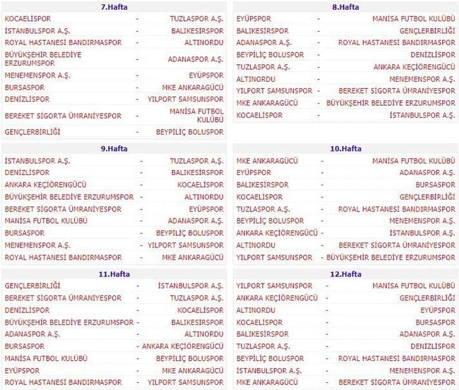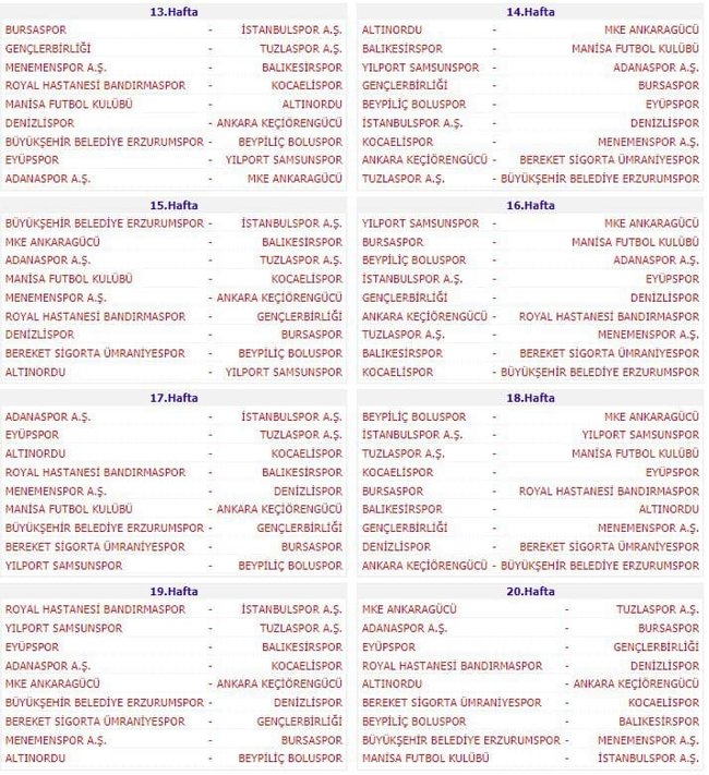 TFF 1. Lig’de 5, 17, 25 ve 33’üncü Haftalarda İse Maçlar Hafta İçi Oynanacak. Her Takım İlk Yarı ve İkinci Yarıda Birer Hafta Olmak Üzere 2 Haftayı Bay Geçecek.