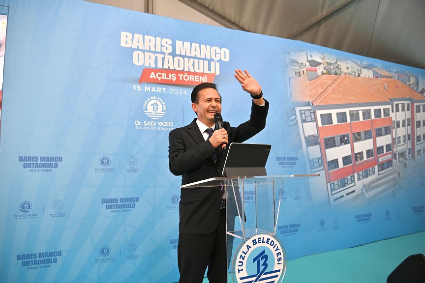 Tuzla Belediye Başkanı Dr. Şadi Yazıcı, “16 Derslikli Barış Manço Ortaokulu’nun Açılışını Gerçekleştirdik. Burada İkili Eğitim Yapılıyordu, Tekli Eğitime Geçildi. 7 Yeni Okul İnşaatı Devam Ediyor. Çocuklarımızın Eğitimi Bizim İçin Çok Kıymetli; Bu Kapsamda 9 Okul, 2 Anasını Okul Yaptık. Bilim Sanat Merkezimizi de Salı Günü Açıyoruz. Ama Okullarımızı Sadece Açmakla Bırakmıyor, Boyasını, Badanasını, Bütün Tadilatı, Tamiratlarını da Yapıp Teslim Ediyoruz. Eğitim Materyalleri, Bilişim Sınıfları, Laboratuvarlar, Okulların Dezenfeksiyonu Hepsi Antiseptik Alana Uygun Olarak Bütün Çalışmalarımızı Çocuklarımız İçin Yapıyoruz. 50 Bin Öğrencimize Kırtasiye Yardımında da Bulunuyoruz. Özellikle İhtiyaç Sahibi Belli Bir Sayıdaki Çocuklarımızı Okullarımızda Tespit Ederek Her Okulda 20-30 Öğrencimize de Öğle Arasında Yemek Veriyoruz” Şeklinde Konuştu.