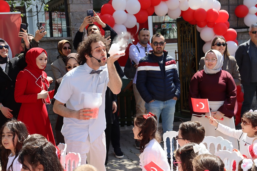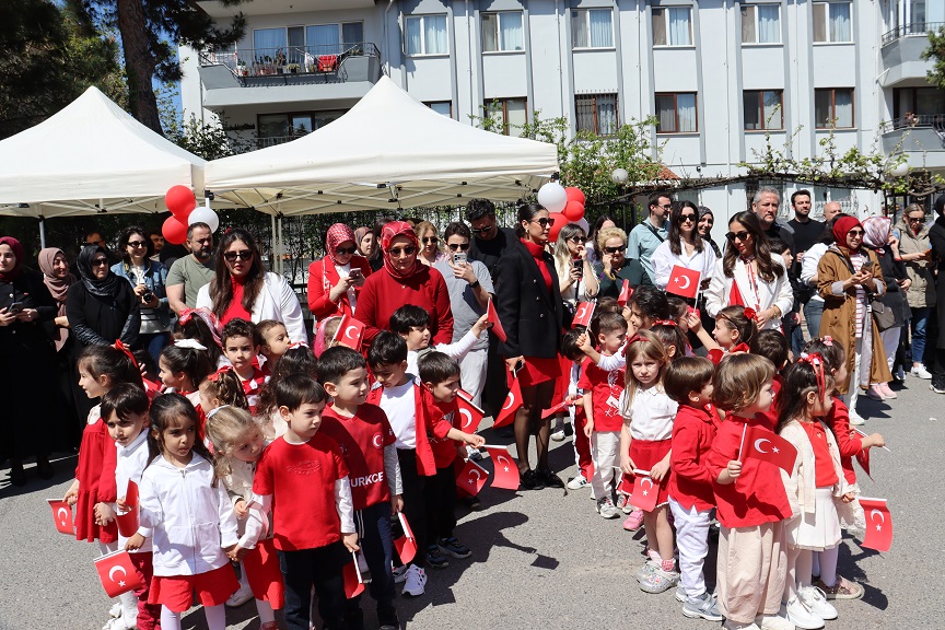 23 Nisan kutlamaları kapsamında düzenlenen etkinlikler, hem minikler hem de aileleri için renkli anlara sahne oldu. Sokakta gerçekleştirilen kortejle başlayan kutlamalarda çocuklar doyasıya eğlenirken, balkonlardan izleyen aileler de bu coşkuya ortak oldu.