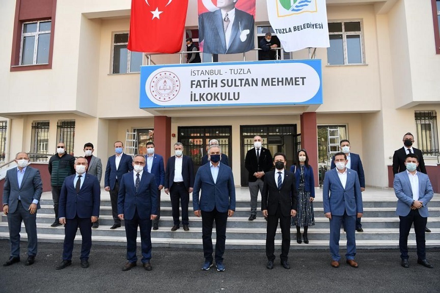 Tuzla Şifa Mahallesi’nde Toplam 10 Milyon TL Bedelle Tamamlanan, 24 Derslikli Fatih Sultan Mehmet İlkokulu’nun Tabelası Asılarak Eğitime Hazır Hale Getirildi. Ayrıca, Mimar Sinan Mahallesi’nde Bulunan Barış Manço Ortaokulu’nun Tek Dersli Sisteme Geçebilmesi İçin Planlanan 16 Derslikli ve 10 Milyon Yatırımlı Ek Binanın da Temeli Atıldı. Törende Konuşan Tuzla Belediye Başkanı Dr. Şadi Yazıcı, “Mimar Sinan ve Şifa Mahallerimizde Biraz Önce Açılışını Yaptığımız Okul İle Birlikte Tekli Eğitime Geçmenin Gururunu Yaşayacağız. Biz Tekli Eğitime Geçmiş Ender İlçelerden Birisi Olmak İstiyoruz” Dedi.