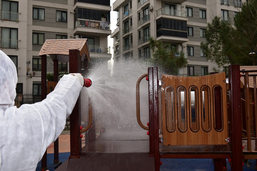“ÇOCUKLARIN VE HALKIN TEMAS ETTİĞİ NOKTALARI DEZENFEKTE EDİYORUZ”