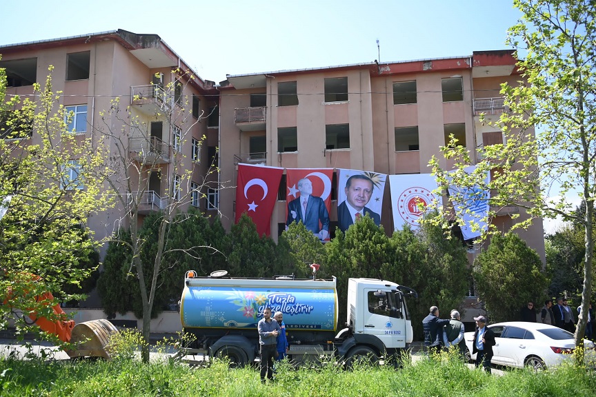 Gaziosmanpaşa’da Düzenlenen ‘Kentsel Dönüşüm Anahtar Teslimi ve Temel Atma Töreni’ Sırasında ‘Kentsel Dönüşümde Yarısı Bizden’ Kampanyası ve Kira Yardımlarının Artırılacağı Müjdelerini Veren Cumhurbaşkanı Erdoğan, Program Sırasında Tuzla’ya Bağlandı. Bağlantı Sırasında, Tuzla’da Tuzla Belediye Başkanı Dr. Şadi Yazıcı’nın Site Sakinleri ve Hak Sahipleri İle Bire Bir Gerçekleştirdiği Görüşmeler Sonucunda Yüzde Yüz Mutabakatla İmzalanan 32 Bin Metrekarelik Sitenin Yıkımı İçin İlk Kazma Vuruldu.