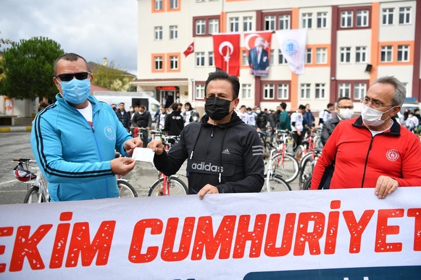 Tuzla’da 29 Ekim Cumhuriyet Bayramı’na Özel Bisiklet Turu Düzenlendi. 7’den 70’e Bisiklet Severlerin Katıldığı Tur, İlçede Büyük Heyecana Neden Oldu. Tuzlalılara Bir de Müjde Veren Tuzla Belediye Başkanı Dr. Şadi Yazıcı, “Şu Anda da Tuzla Belediyesi Olarak Düzenlediğimiz 19 Kilometrelik Bir Parkur Hazırlığımız Var. İhalesini Yapacağız. Bisiklet Sporunun Tuzlamızda Çok Farklı Bir Aşamaya Geleceğini Şimdiden Söyleyebilirim” Dedi.