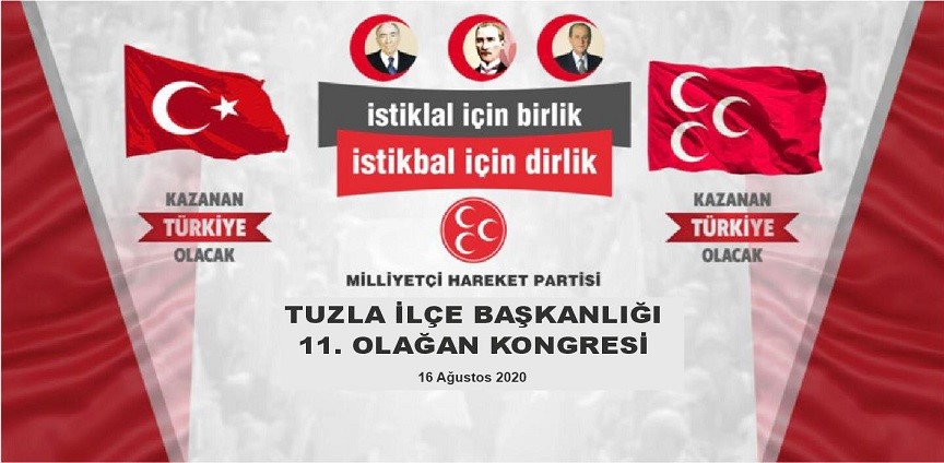 Değerli Tuzlalı Hemşehrilerim; Milliyetçi Hareket Partisi Tuzla İlçe Başkanlığımızın 11. Olağan Kongresi 16 Ağustos 2020 Pazar Günü Şelale Park Amfi Tiyatro Alanında Gerçekleşecektir.