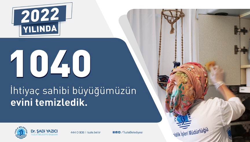 Tuzla Belediyesi, Sosyal Belediyecilik Anlayışı İle İhtiyaç Sahibi ve Kendi İşini Yapamayan 65 Yaş Üstü Vatandaşların Evlerini Tepeden Tırnağa Temizleniyor. Belediye Ekipleri “Evde Temizlik ve Bakım Hizmetleri” Kapsamında Yaşlı, Engelli, Kimsesiz ve Bakıma Muhtaç Vatandaşlara Ücretsiz Olarak Temizlik Hizmeti Veriyor. Bu Kapsamda 2022 Yılı İçerisinde Toplam Bin 40 Ev Temizlendi.