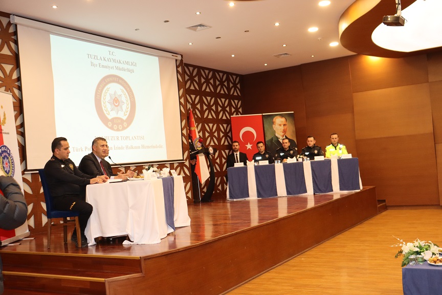 Tuzla İlçe Emniyet Müdürlüğü tarafından ilçenin genel asayiş durumu ile önümüzdeki döneme ilişkin planlanan güvenlik tedbirlerinin ele alındığı Huzur Toplantısı, Tuzla Belediyesi Nikâh Sarayı’nda gerçekleştirildi.