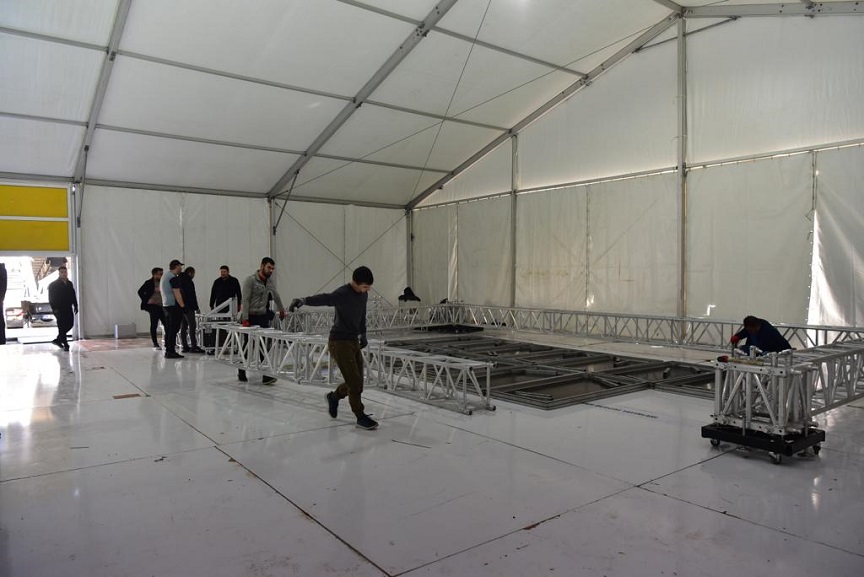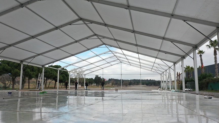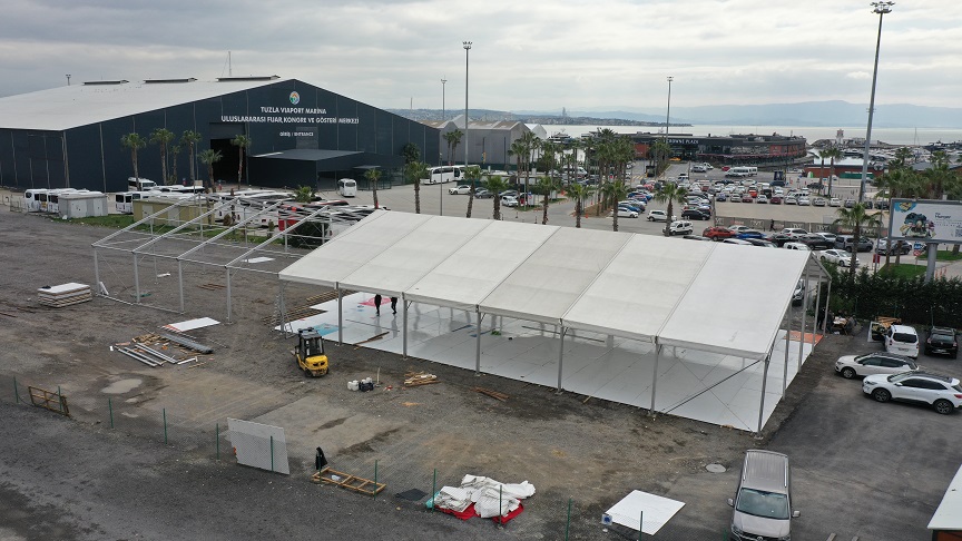 Çevre, Şehircilik ve İklim Değişikliği Bakanlığı, TOKİ Eliyle Hayata Geçirilen ve 6 Şubat Kahramanmaraş Merkezli Depremler Nedeniyle Ara Verilen Cumhuriyet Tarihinin En Büyük Sosyal Konut Hamlesi “İlk Evim” Projesinde Kura Çekimleri İstanbul İle Sona Eriyor. 250 Bin Sosyal Konutun Kurası 81 İlde 3,5 Ay Gibi Kısa Bir Sürede Tamamlandı. İstanbul İçin 50 Bin Sosyal Konutun Kurası Tuzla, Çatalca, Selimpaşa, Arnavutköy, Başakşehir, Esenler İlçelerinde 16 Mart- 19 Nisan Tarihleri Arasında Noter Huzurunda Çekilecek. İlk Evim Projesi Kapsamında Tuzla’ya Yapılacak 20 Bin 920 Konutun Kura Çekilişine Tuzla Belediyesi Ev Sahipliği Yapacak. Çekilişin Yapılacağı İki Adet Çadır, Tuzla Belediyesi Ekipleri Tarafından Tuzla Marina’ya Kurulmaya Başlandı. Kura Çekilişinin Yapılacağı Çadır Havadan Görüntülendi.