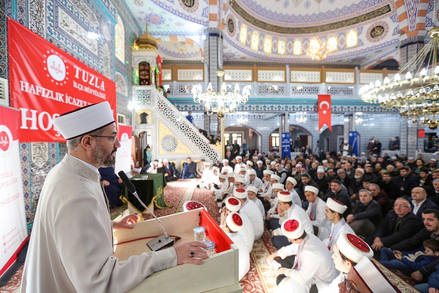 Kur’an-ı Kerim’i ilk ezberleyen ve ilk hafızın Hz. Muhammed (S.A.V.) olduğuna dikkat çeken Tuzla Müftüsü Mustafa Aydın ise konuşmasında şu ifadelere yer verdi: