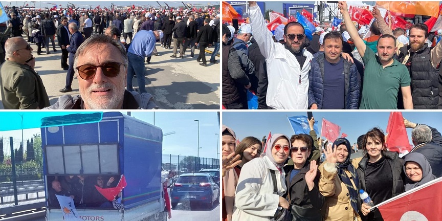 Sabah Saatlerinde Başlayan Tuzla’da İstanbul Mitingine Tarihin En Büyük Katılımıyla Gerçekleşti. AK Parti Tuzla İlçe Başkanı Av.Talha Tayfur, Tuzla Belediye Başkanı Dr.Şadi Yazıcı, Üç Kademe İlçe Yönetimi, Mahalle Başkanları ve Yönetimleri, Kadın Kolları, Gençlik Kolları, Meclis Üyeleri ve Çok Sayıda AK Partili Mahalle İrtibat Bürolarında Kalkan Araçlarla Akın Akın Miting Alanına Koştu. Tuzla’nın Cumhur İttifakı Ortaklarında Katıldığı Toplamda 2 Milyon’u Aşkın İstanbullu Yüzyılın Türkiye’sinde Yüzyılın Mitingine Şahitlik Etti. Herkes Sevdiğini En Güvendiğine Emanet Eder, Türkiye Sana Emanet Recep Tayyip Erdoğan Sözleri Miting Alanında da Haykıran İstanbullular, Erdoğan’ın Miting Alanında Helikopterle Turlaması Sonra Seslenmesiyle Cumhur İttifakı Ortaklarıyla Buluşmanın Sevincini Yaşadı.
