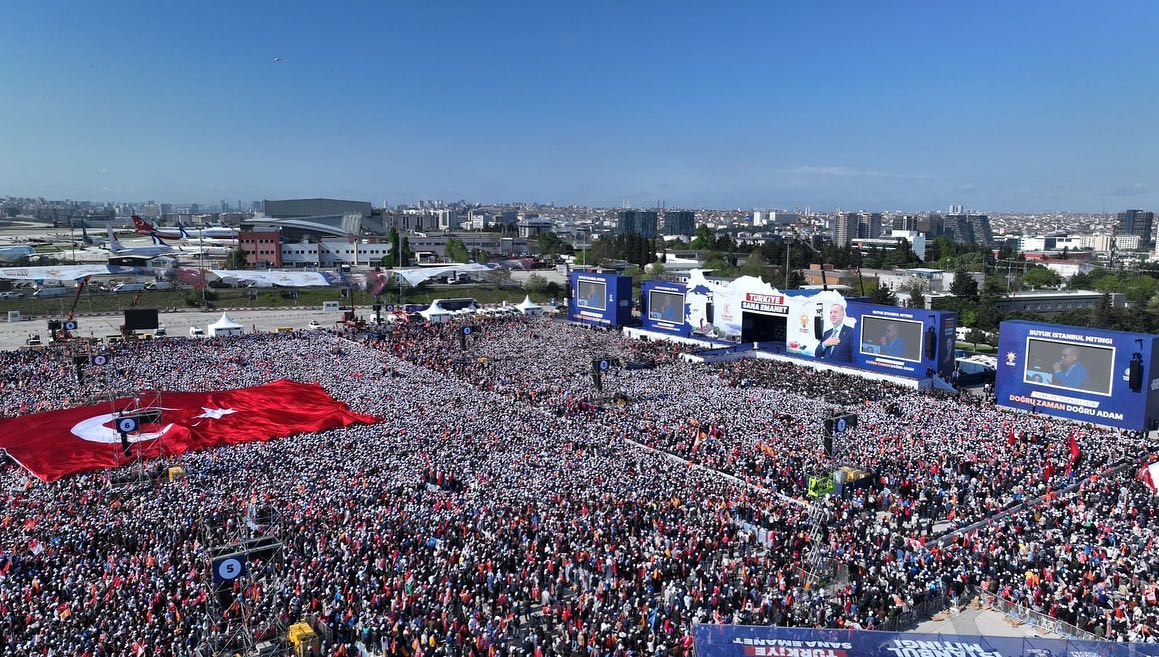 Başta gençler olmak üzere vatandaşlardan söz isteyerek, alandakilere, “14 Mayıs’ta sandıklara sahip çıkıyor muyuz?”, “14 Mayıs’ta koalisyon masasını sandıkları gömüyor muyuz?” diye soran Erdoğan, “İstanbul isterse yapar, İstanbul ‘tamam’ diyorsa Allah’ın izniyle bu iş bitmiştir.” değerlendirmesini yaptı.